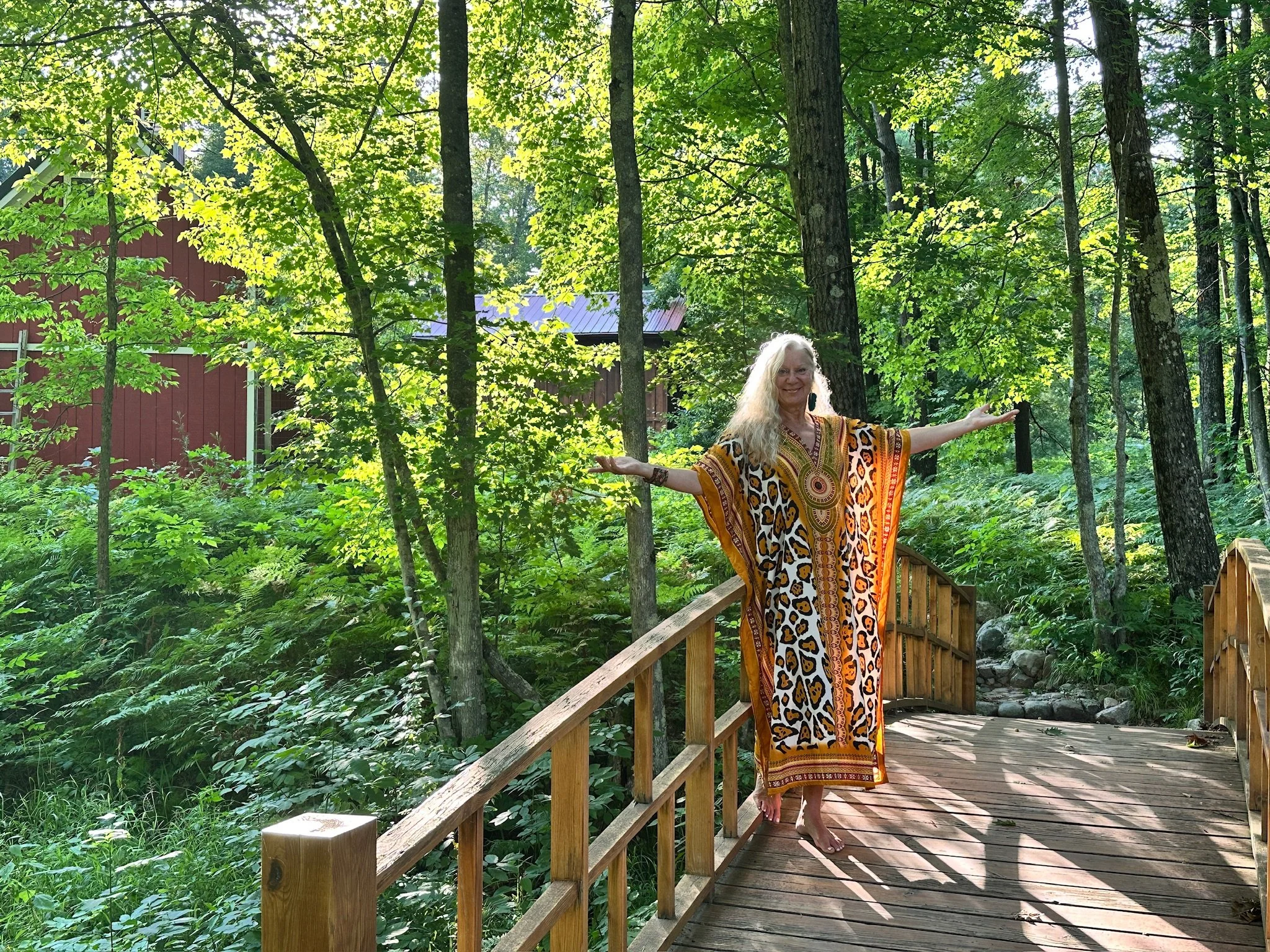 Guests will stay in charming, private rooms nestled within the Lynx Run retreat grounds—designed for comfort, quiet, and connection to nature. Each space is thoughtfully appointed with rustic elegance, surrounded by tranquil forest views, gardens, and the sound of a nearby creek.