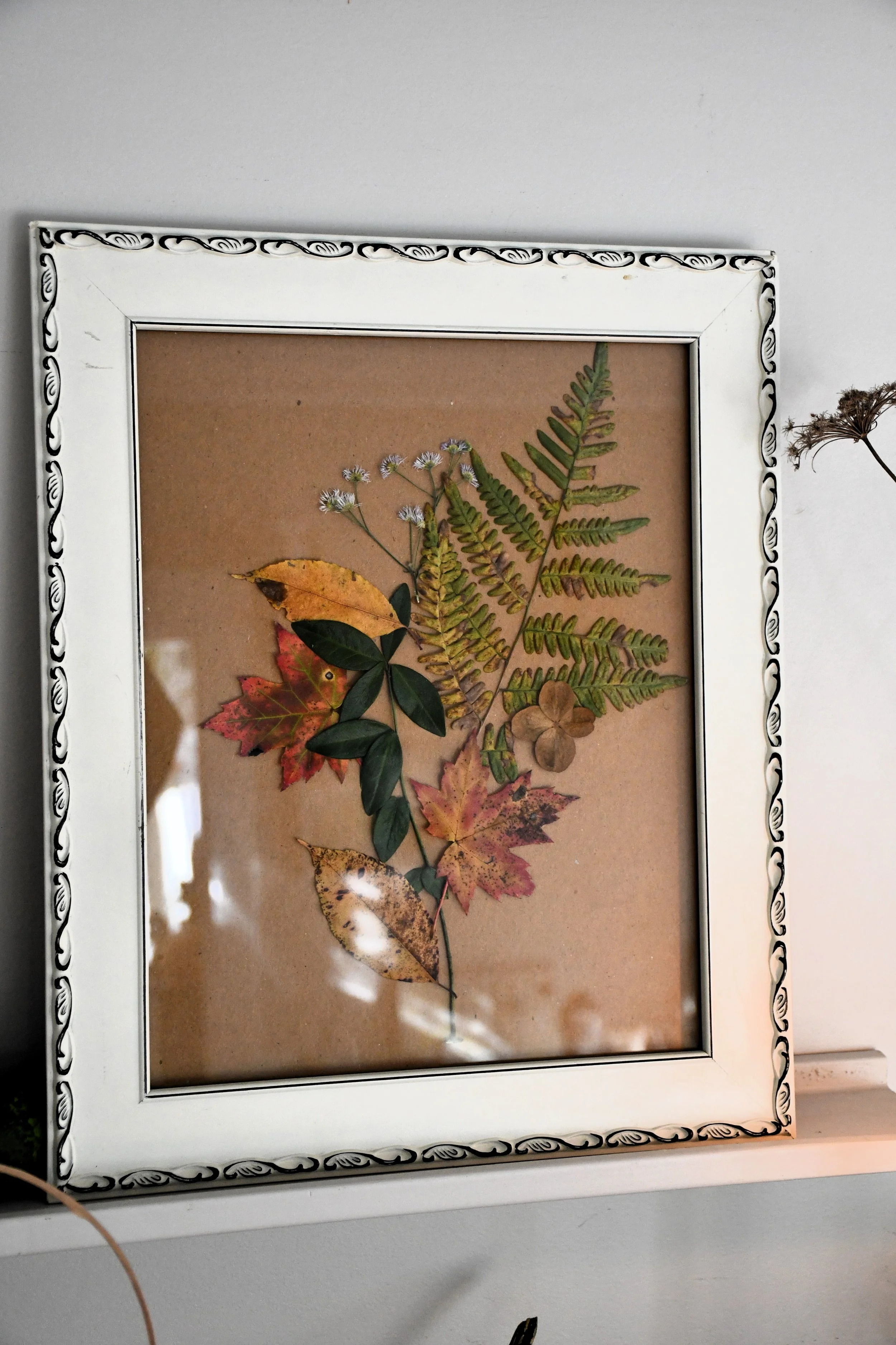 As I laid some of my finds from my walk an idea popped up in my head: how about using this delightful combination as an art form?! And I just put everything into the frame, even without drying that tiny white aster flower and even not gluing leaves to the background (however, you can certainly do that!)