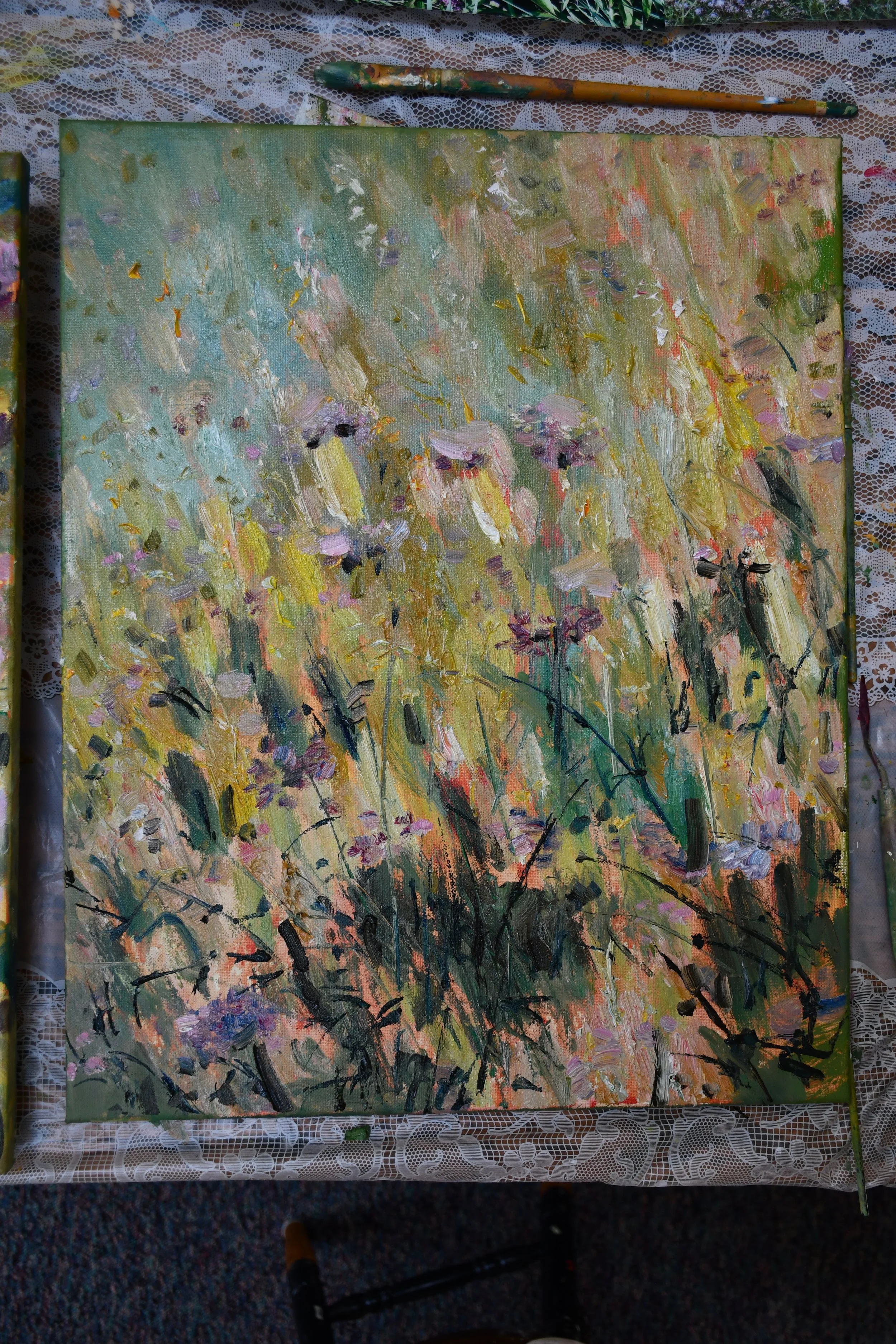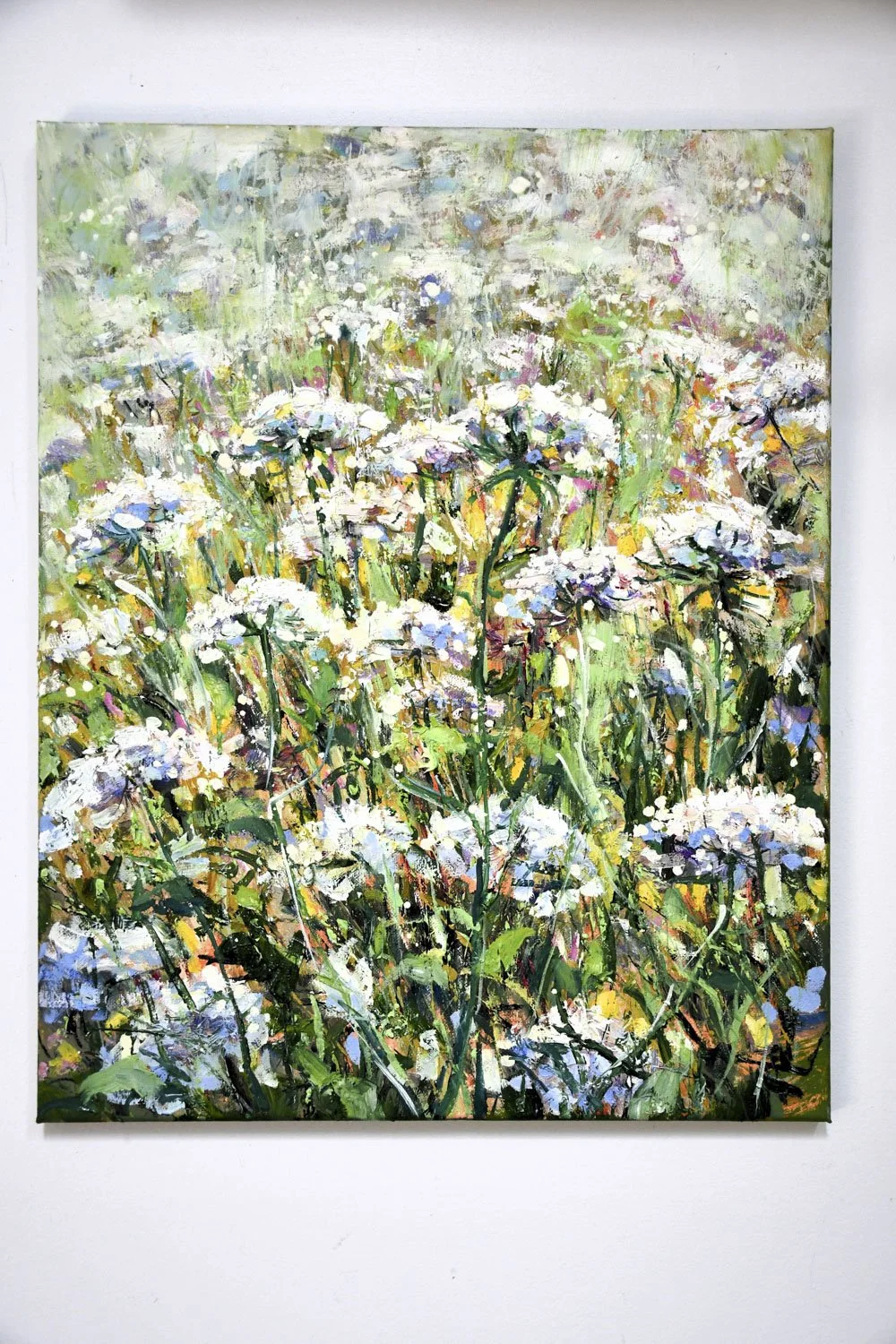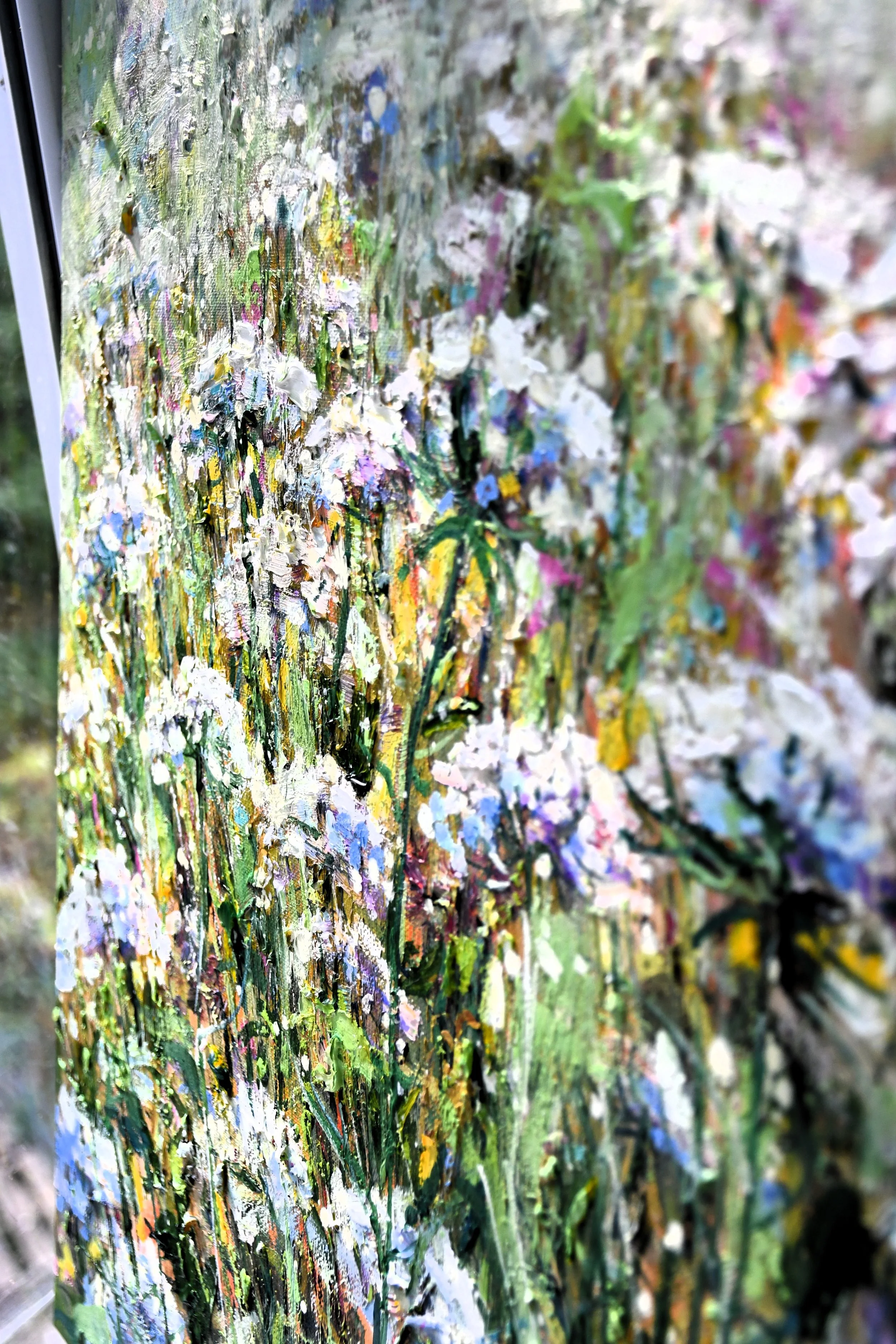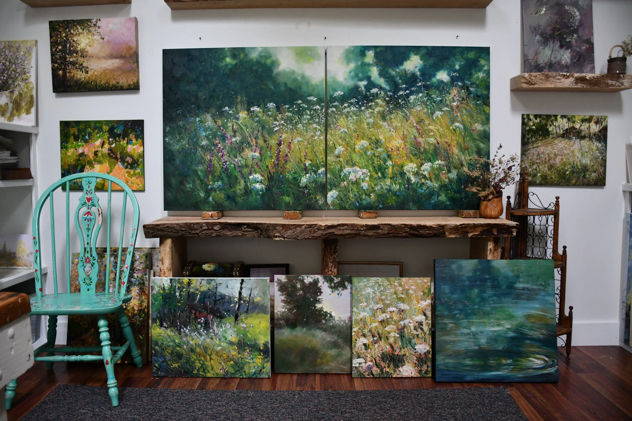 My distinctive painting style is characterized by loose and expressive brush strokes (and at times, the palette knife), varying in density, thereby bestowing a three-dimensional essence to the artwork. As the room's illumination shifts throughout the day, so does the play of light in the painting, breathing life into it.