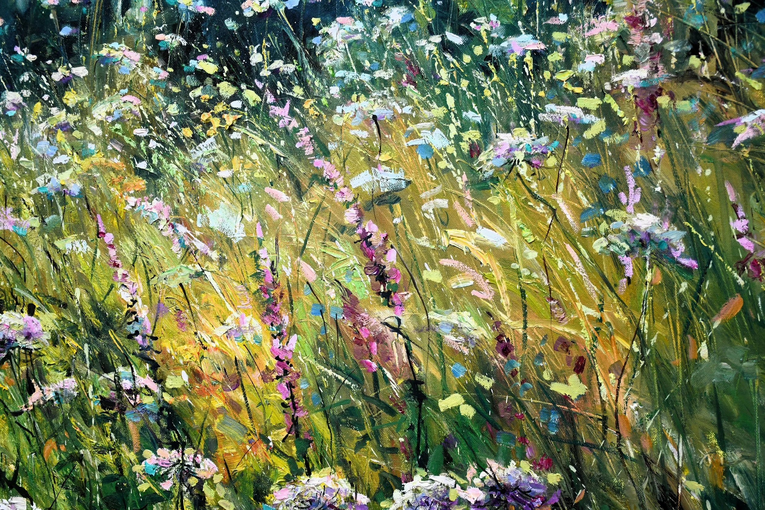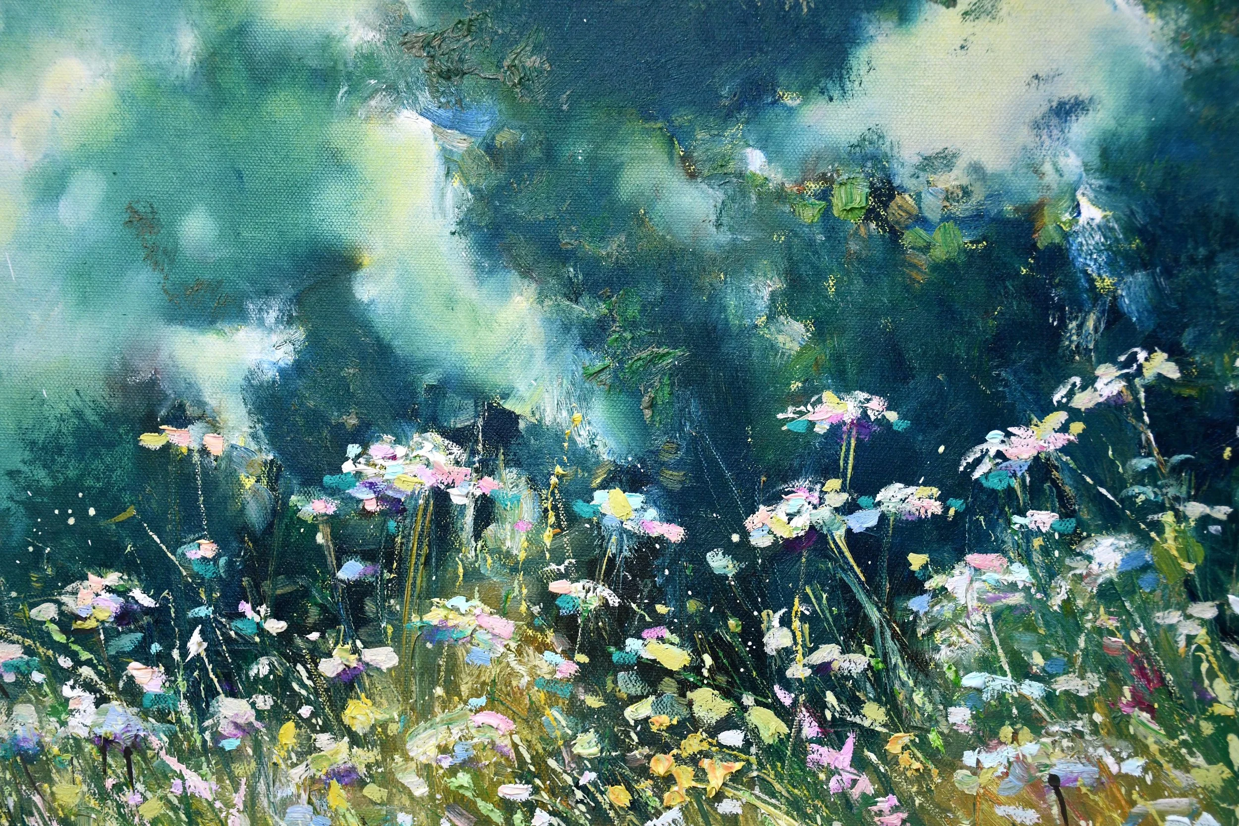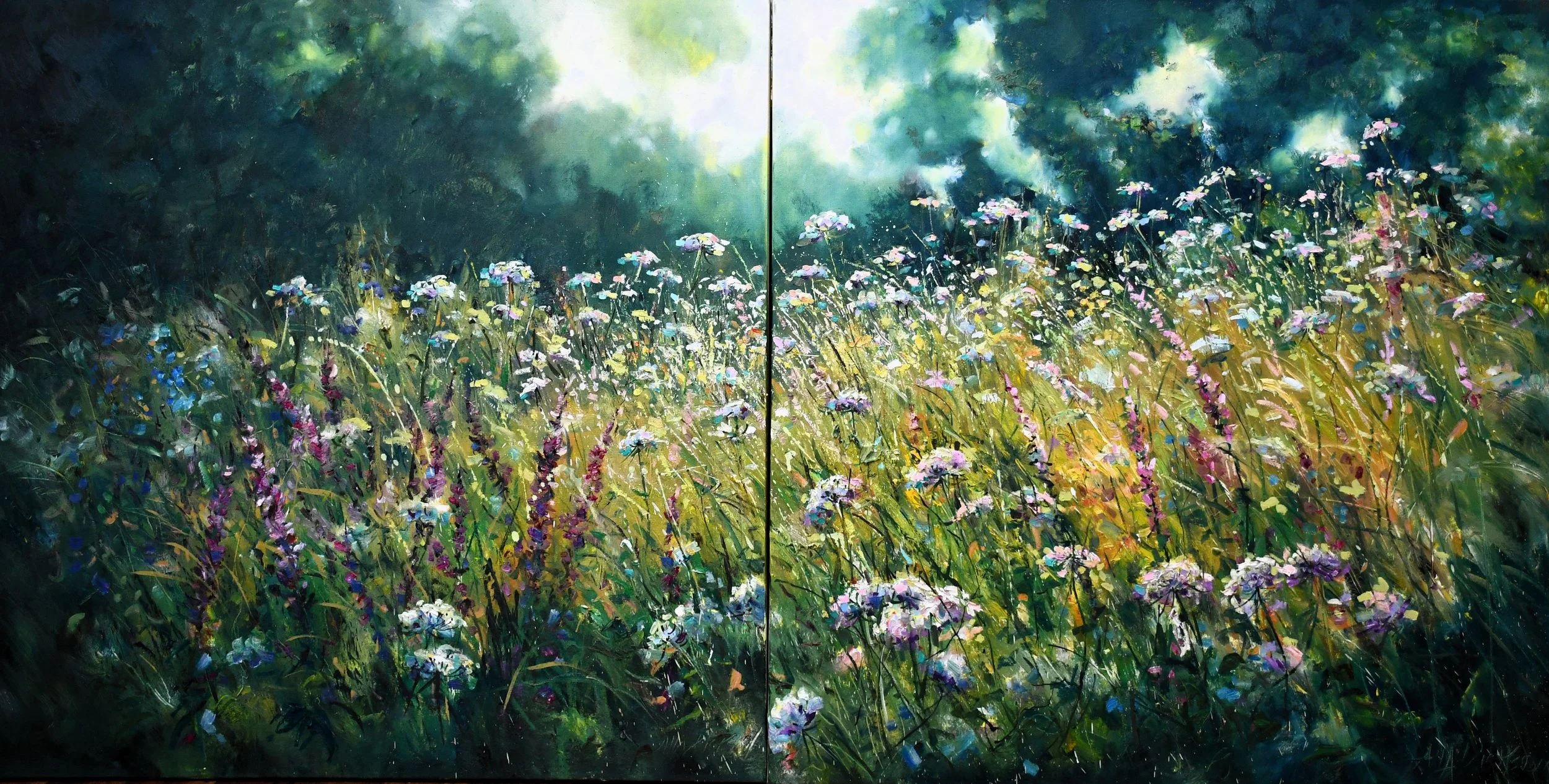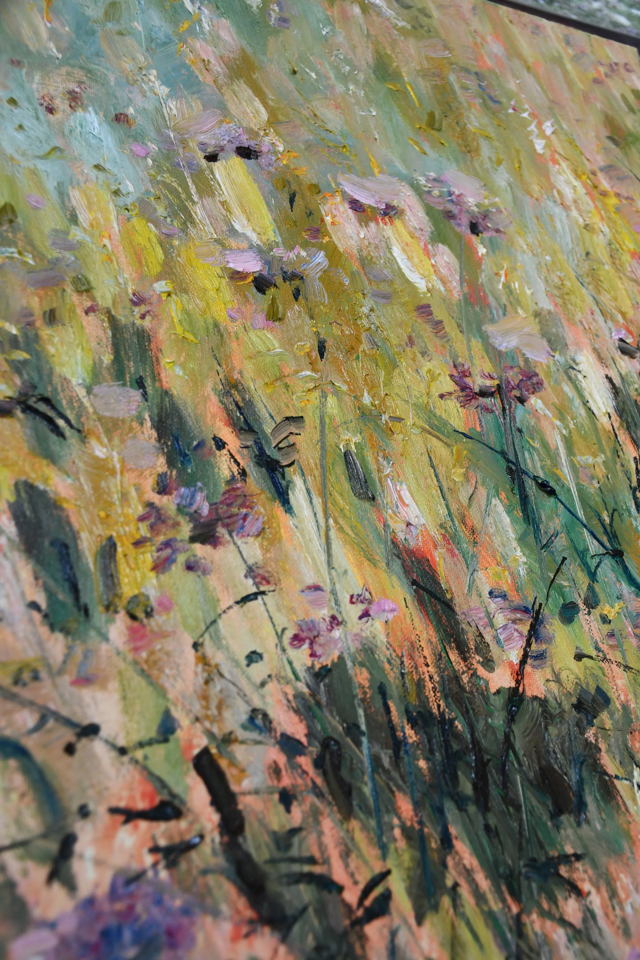 My distinctive painting style is characterized by loose and expressive brush strokes (and at times, the palette knife), varying in density, thereby bestowing a three-dimensional essence to the artwork. As the room's illumination shifts throughout the day, so does the play of light in the painting, breathing life into it.