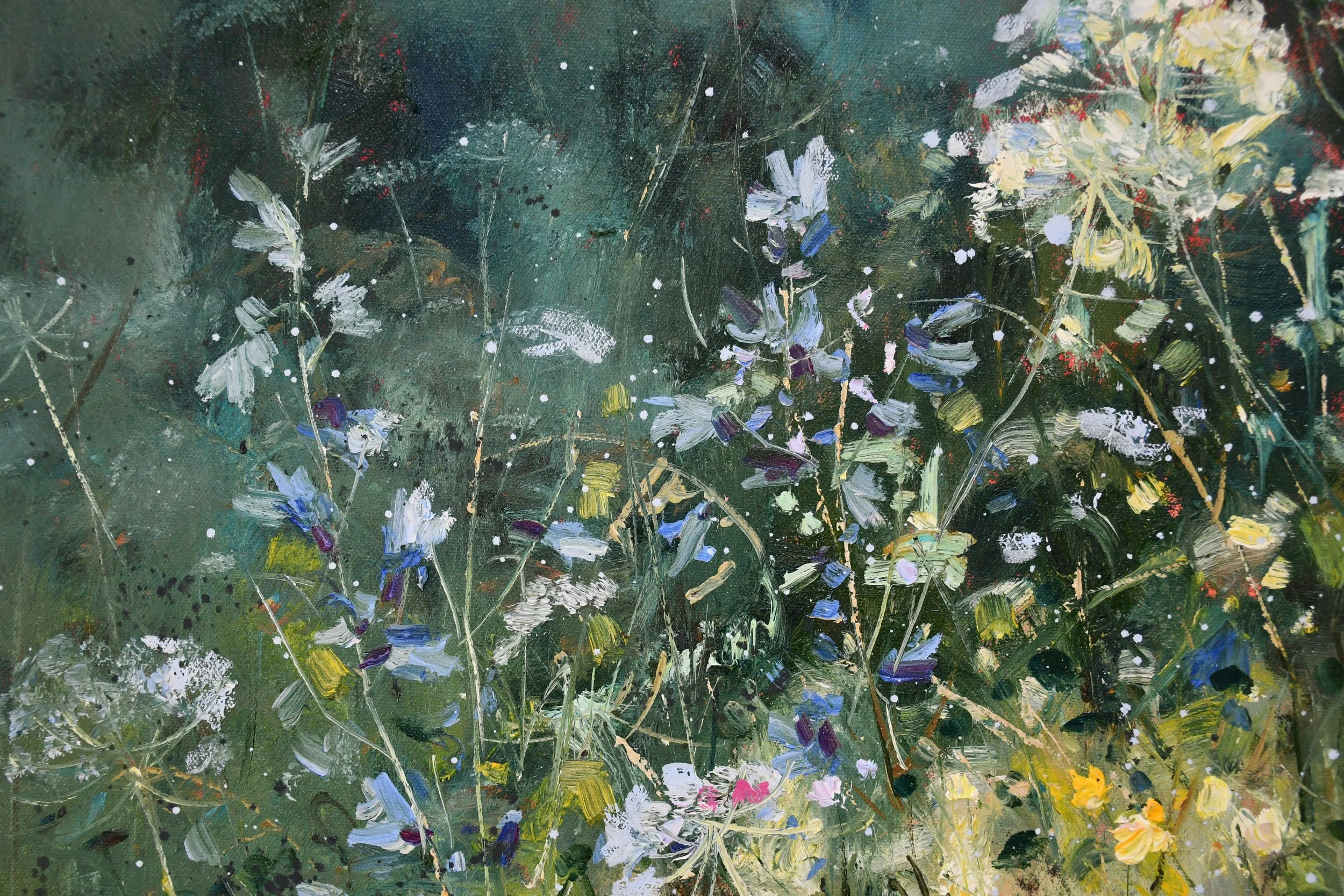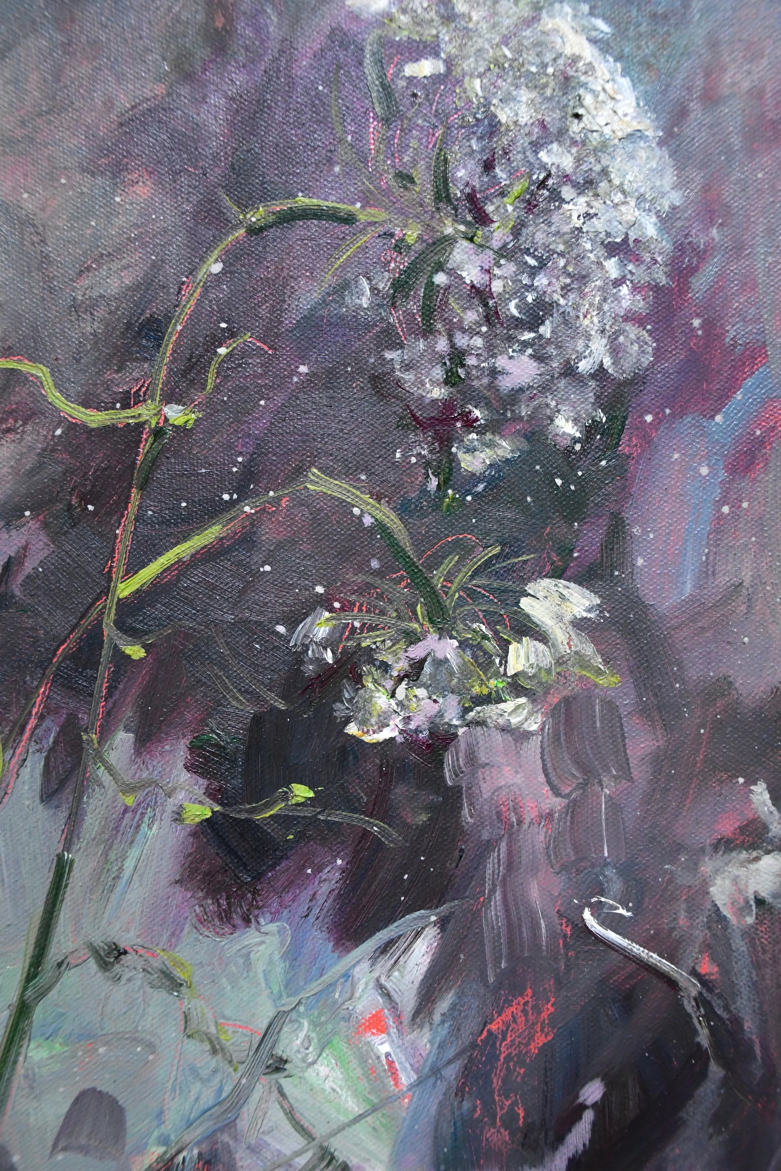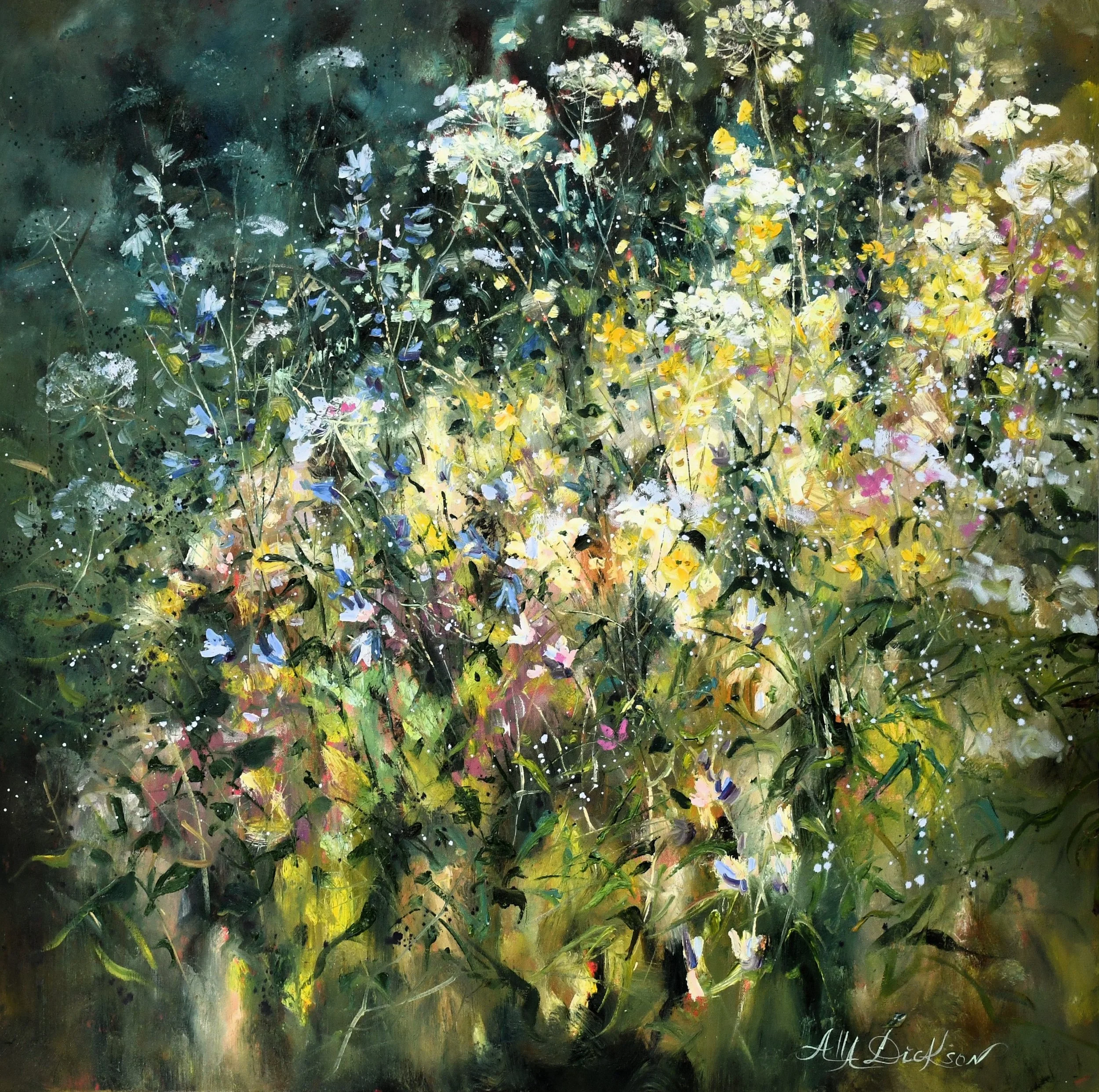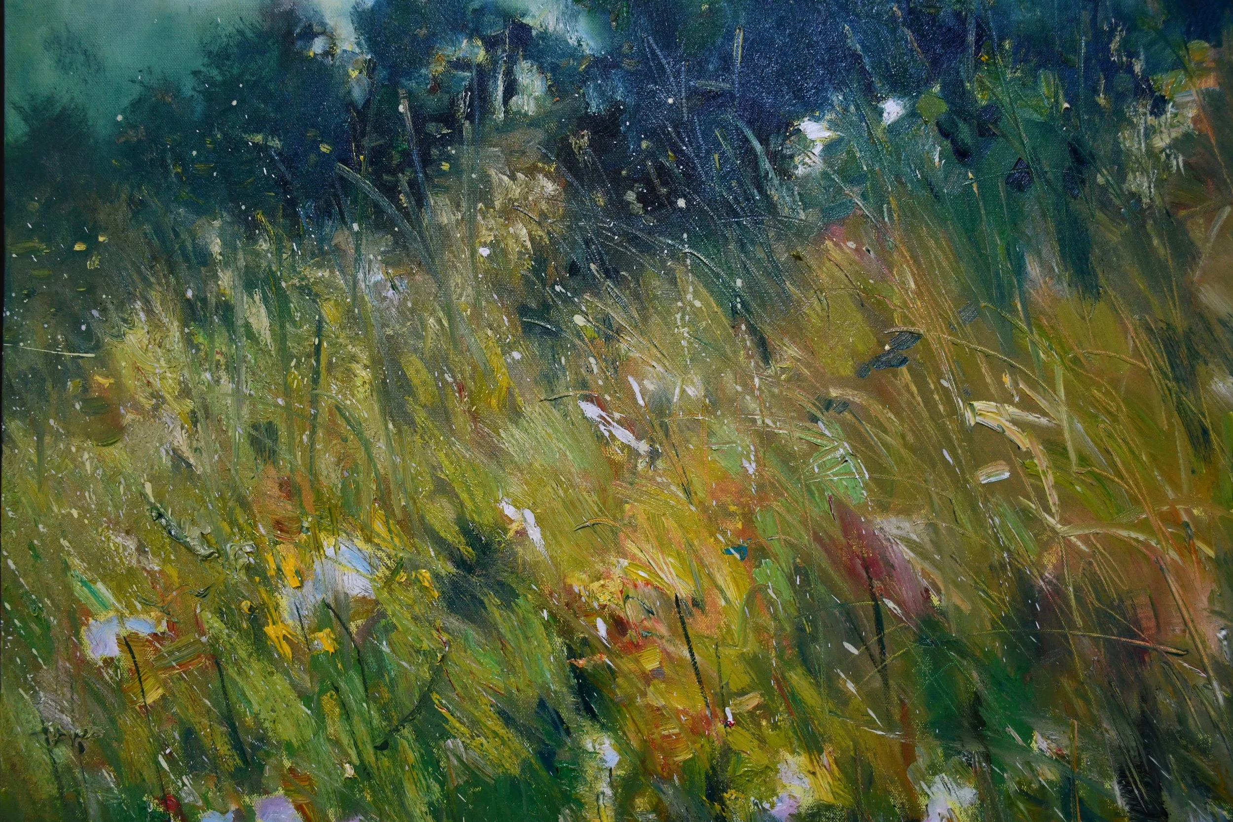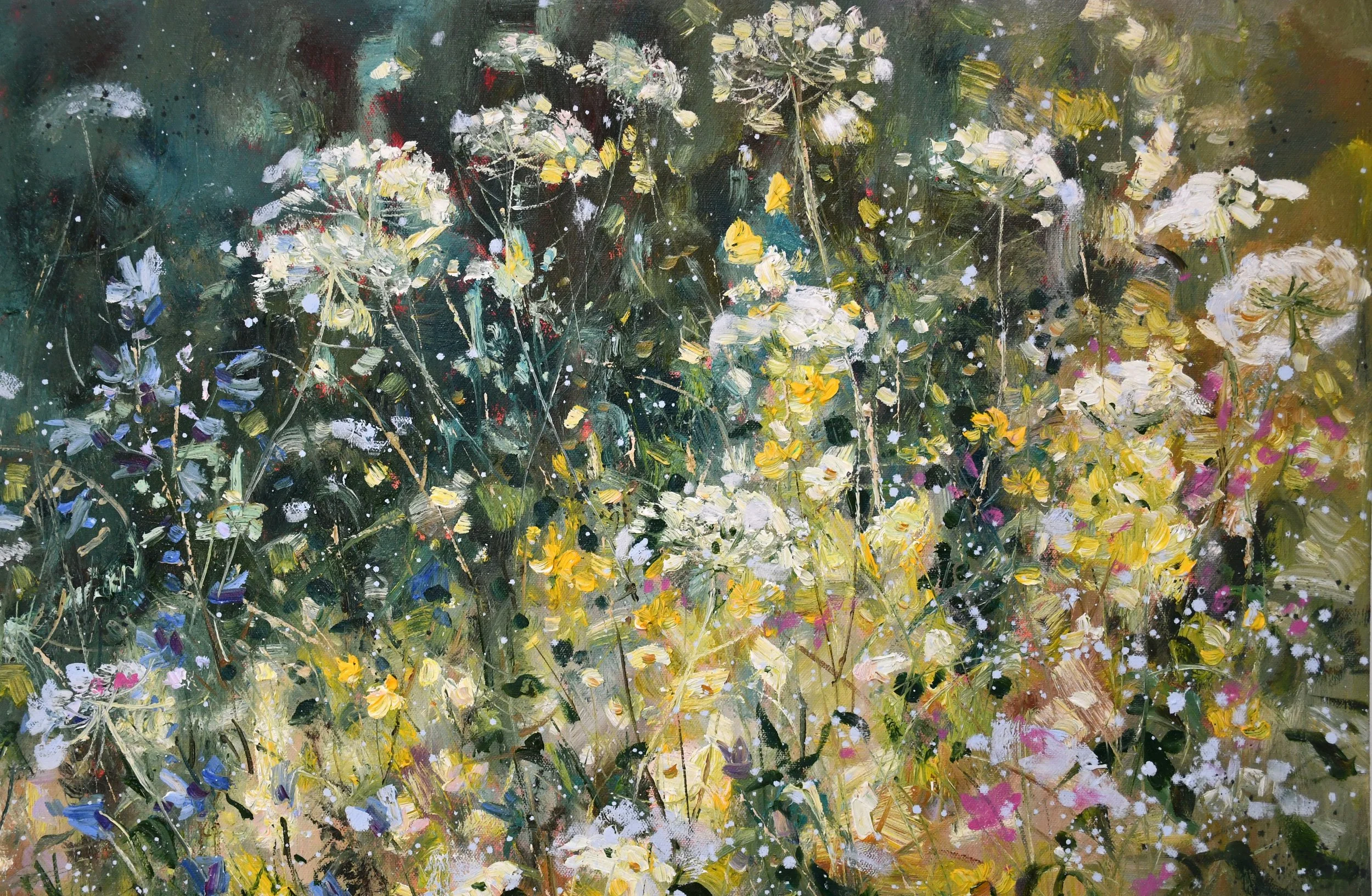 My distinctive painting style is characterized by loose and expressive brush strokes (and at times, the palette knife), varying in density, thereby bestowing a three-dimensional essence to the artwork. As the room's illumination shifts throughout the day, so does the play of light in the painting, breathing life into it.