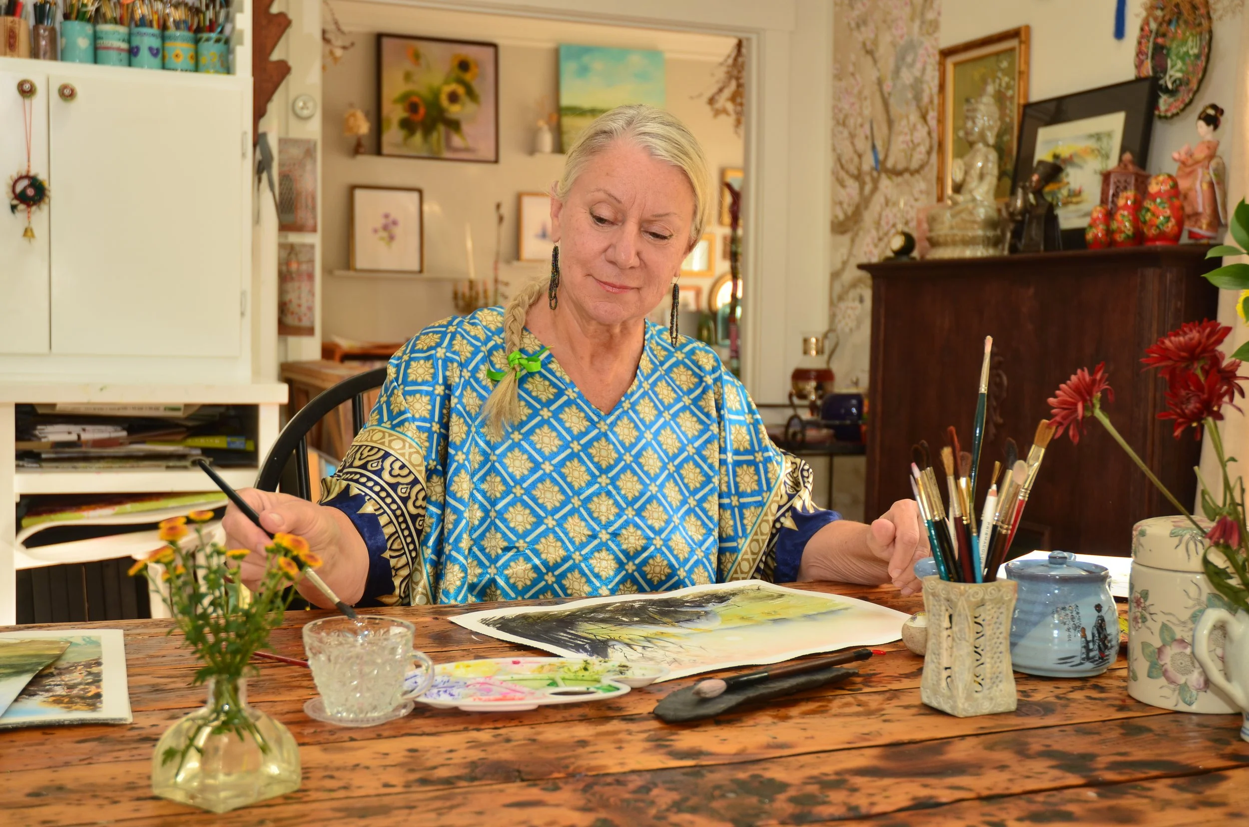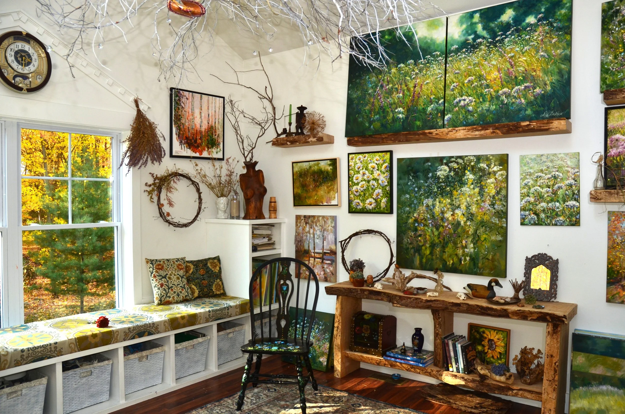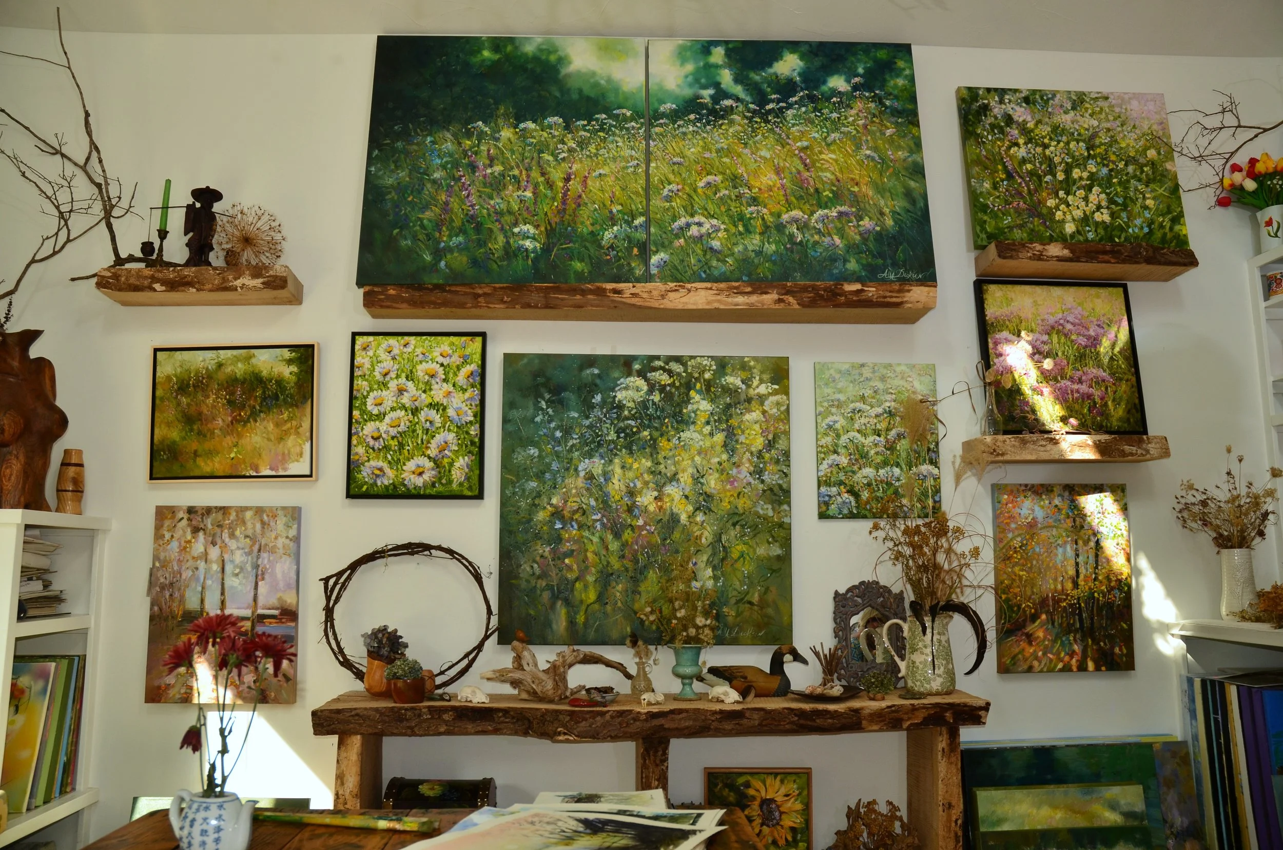 This painting is done in an impressionistic style with rich texture that makes a stunning effect by catching light and thus changing its hues throughout the day. The painting was inspired by one of my art class students, Marge, who vividly depicted her “happy place”: poppy field by a white birches’’ forest. And thus, the title of this painting was born: “ Her Happy Place”. I must admit, this is the second version of Marge’s vision. The first painting has been happily beautifying her home, brining peace and joy to Marge. I was so overwhelmed by the effect of that painting on Marge, that I was highly motivated to paint another version of it.