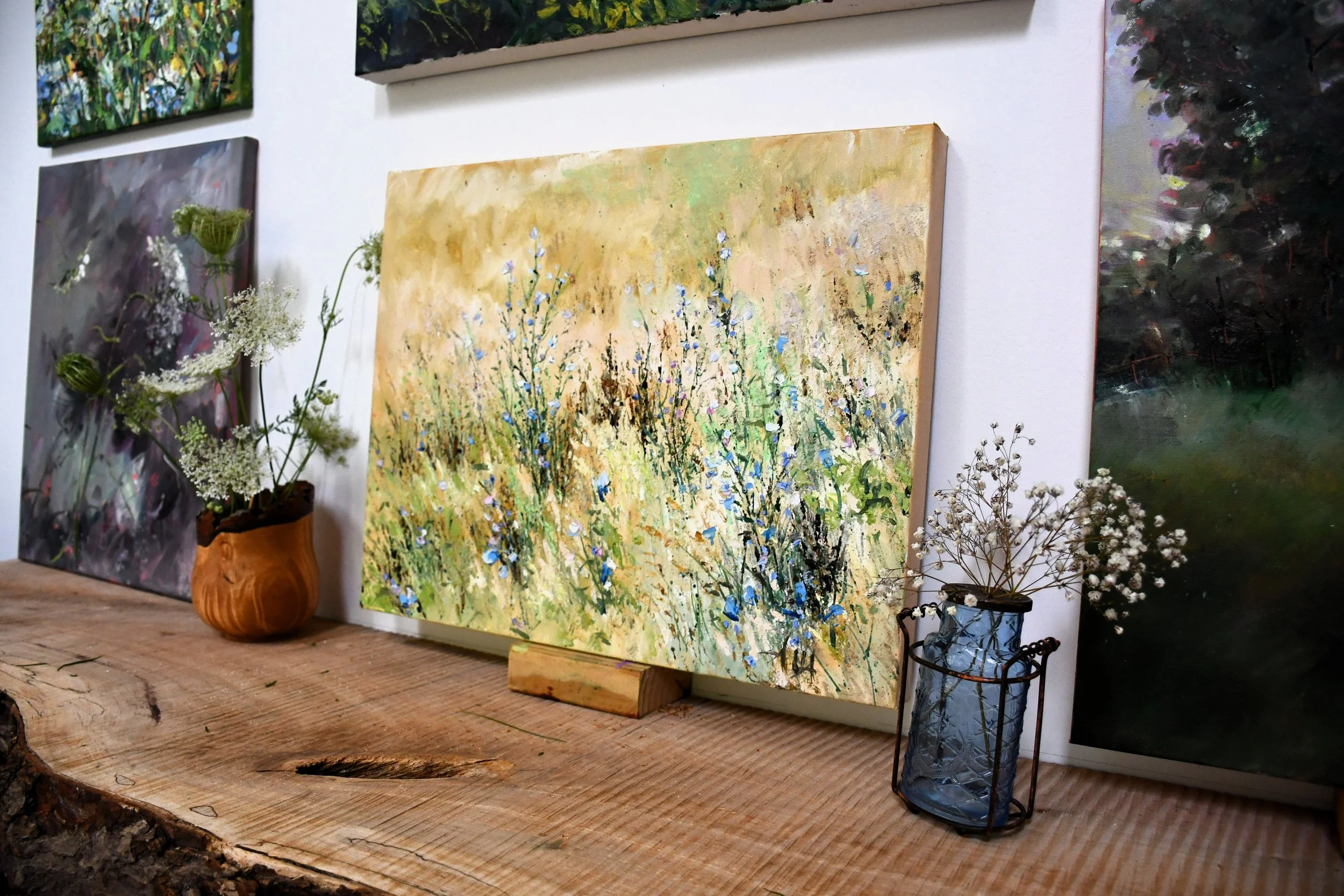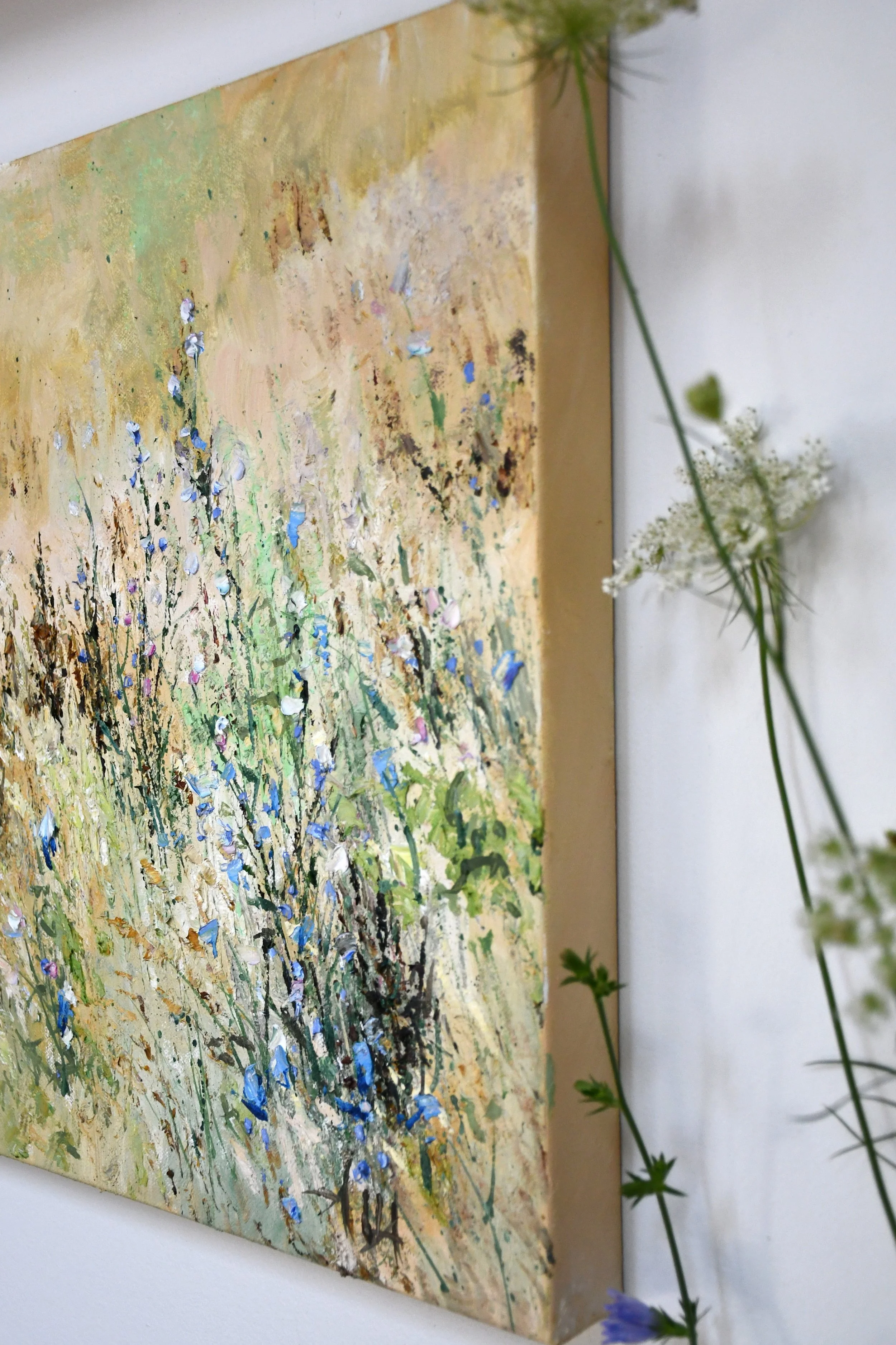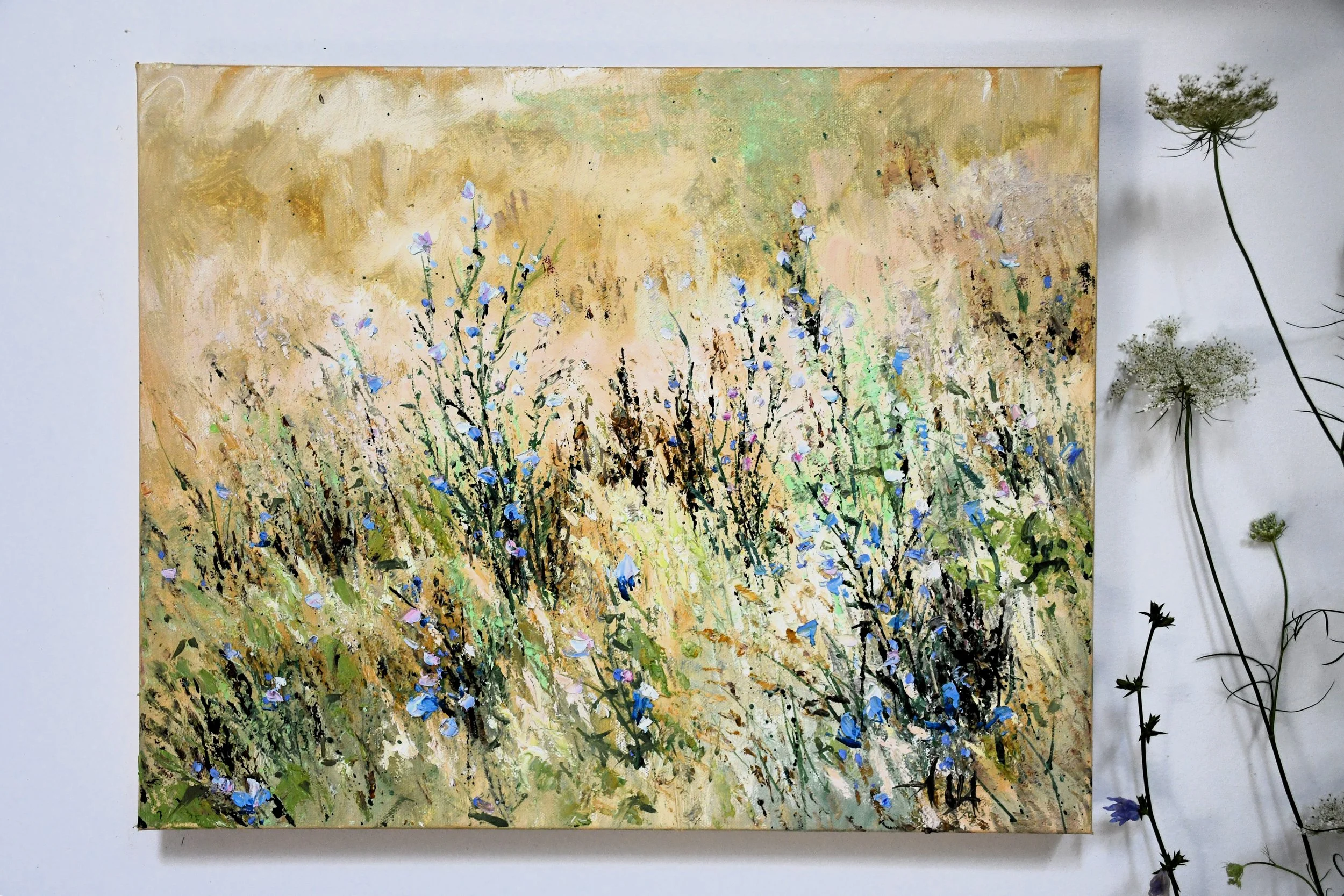 It is one of many portraits of my favorite wildflower. When my wildflower bouquets are wilted, I never throw them away- I allow them to naturally dry in a vase without water. In winter, these delicate flowers continue to fill my art studio with true beauty and the purest soul of beloved nature. This piece celebrates the quiet magic of summer meadows.