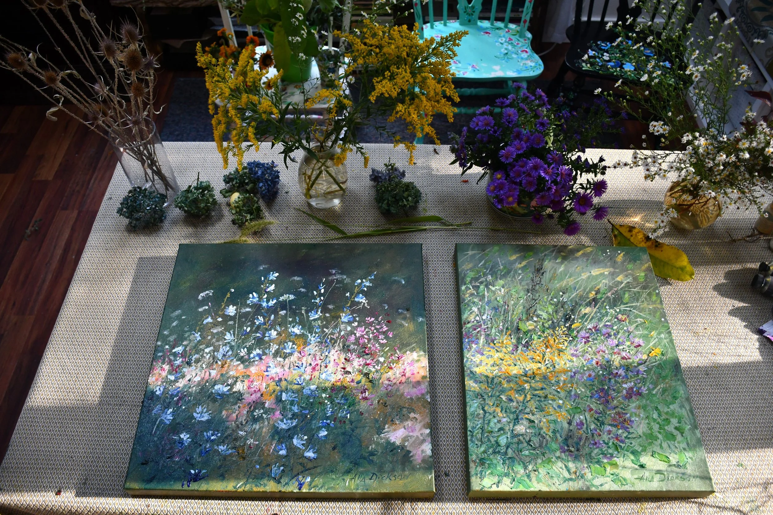 Wild flowers has always been my primary subject matter. For many years I did not even realize that- I was just painting whatever inspired me that day, diving into the process fully possessed by the subconscious desire to capture the untamed nature. Was it my intuitive escape into my free and happy childhood? Perhaps.